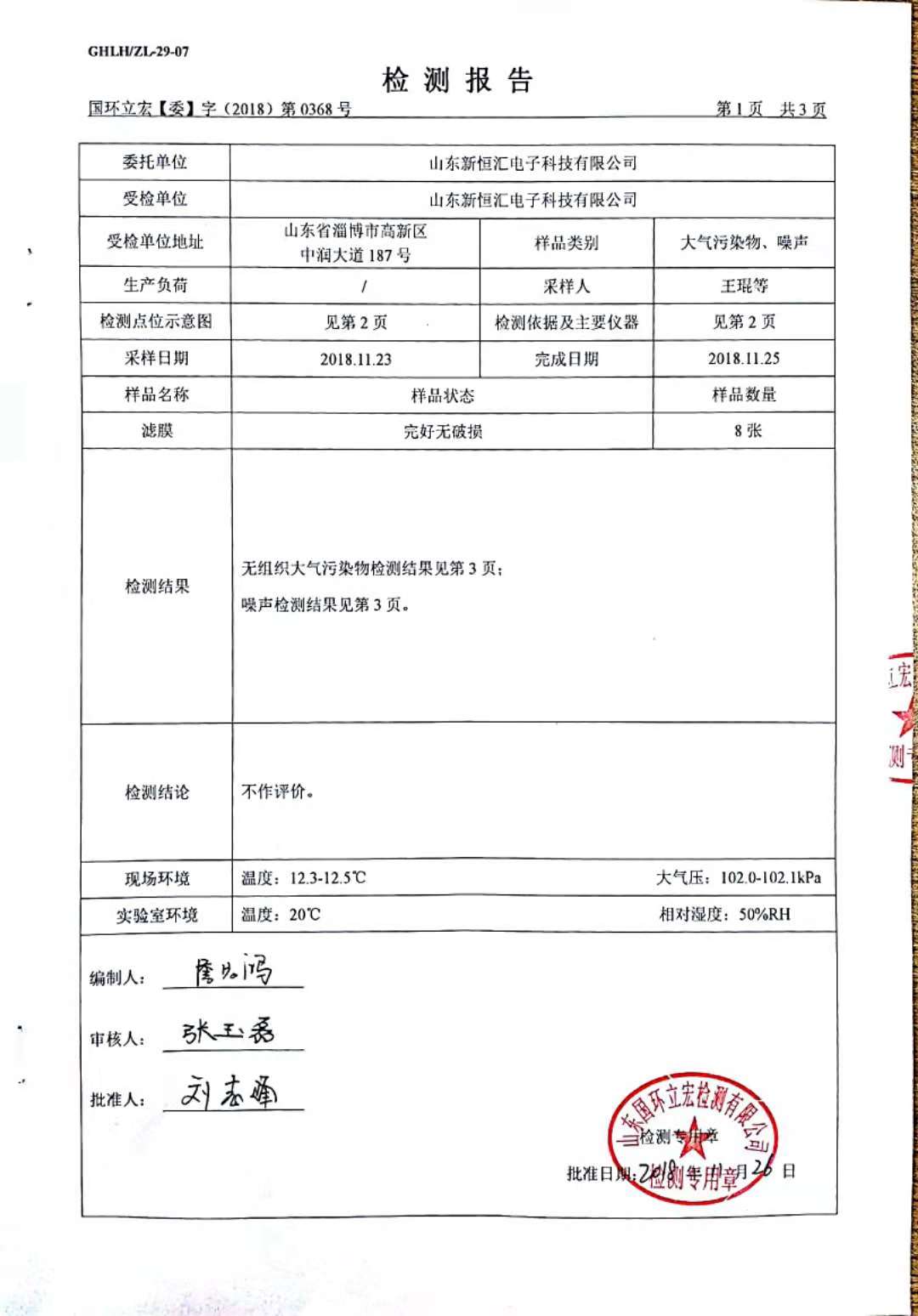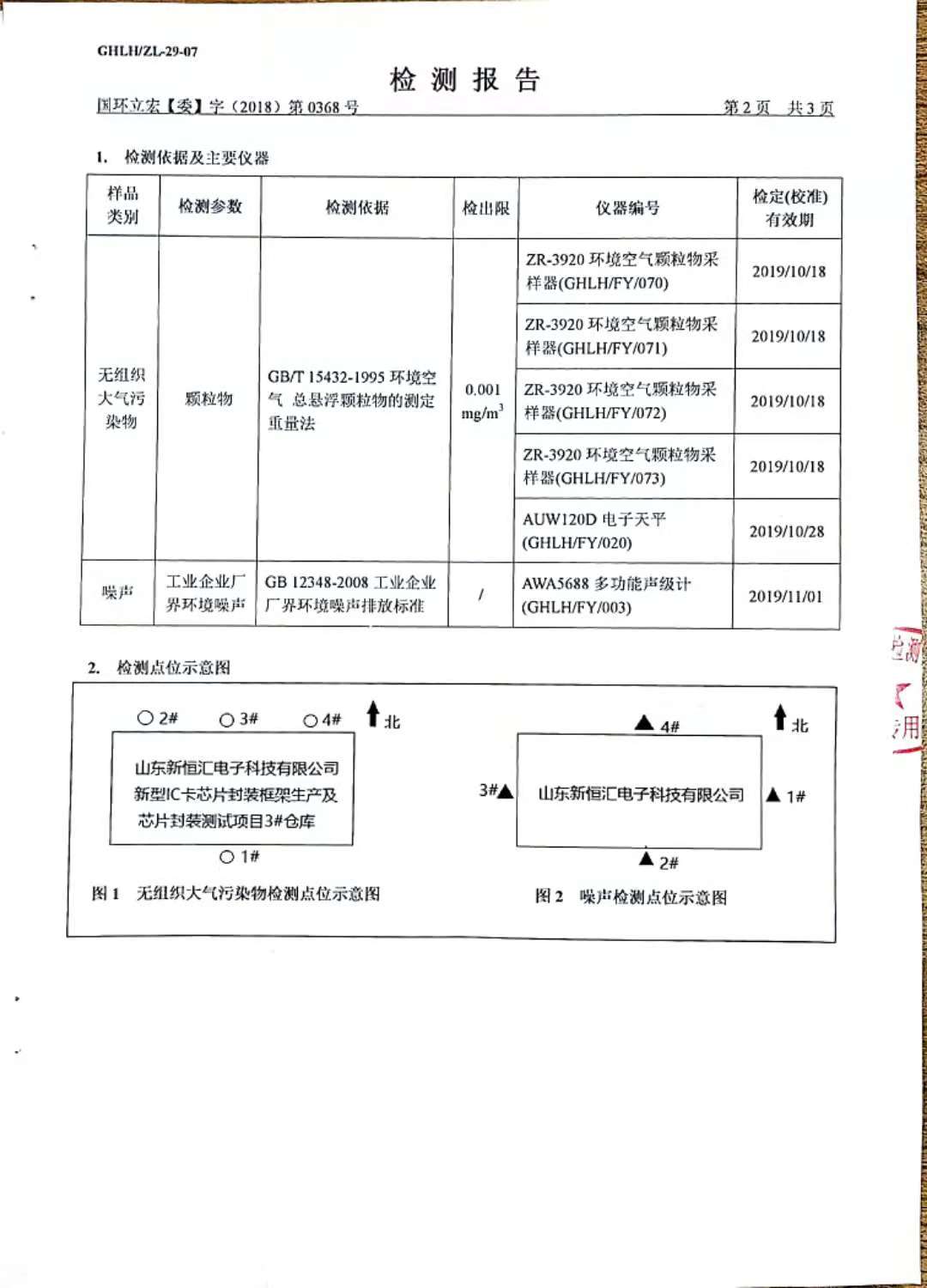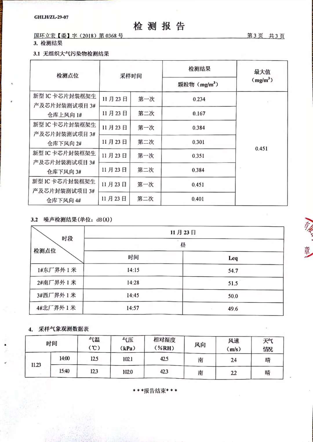 大氣污染物、噪聲檢測--新型IC卡芯片封裝框架生產及芯片封裝測試項目3#倉庫