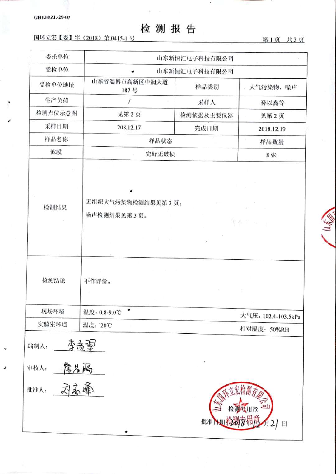 大氣污染物、噪聲檢測--新型IC卡芯片封裝框架生產(chǎn)及芯片