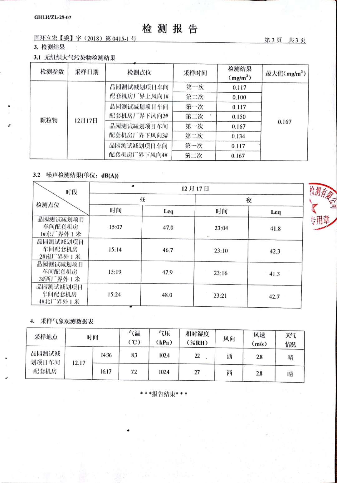 大氣污染物、噪聲檢測--2#車間